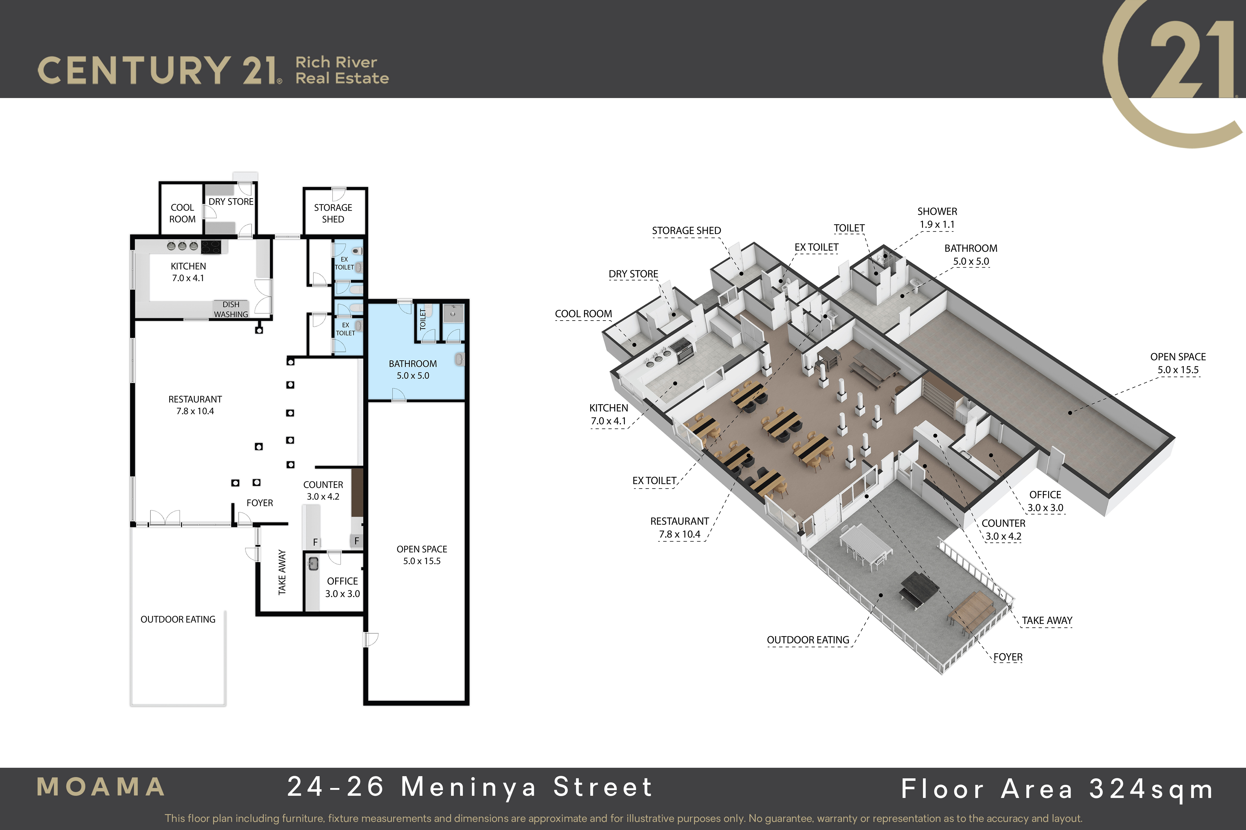 Prominent location on 'Moama's Golden Mile' with a 20m (approx) frontage onto Meninya Street 1000m2 + of commercial property, owned by a local family, that has not been to market in over 20 yearsTwo separate buildings up for grabs, all on the one title, with rear access and main street exposureThe larger of the two buildings currently utilised as a popular local restaurant, with the other shop a vacant blank canvas, ready for you to let the imagination run wildProperty will be sold with vacant possession for the next owners to really put their personal stamp on itBecome a part of a rapidly developing township, with endless opportunities in front of you