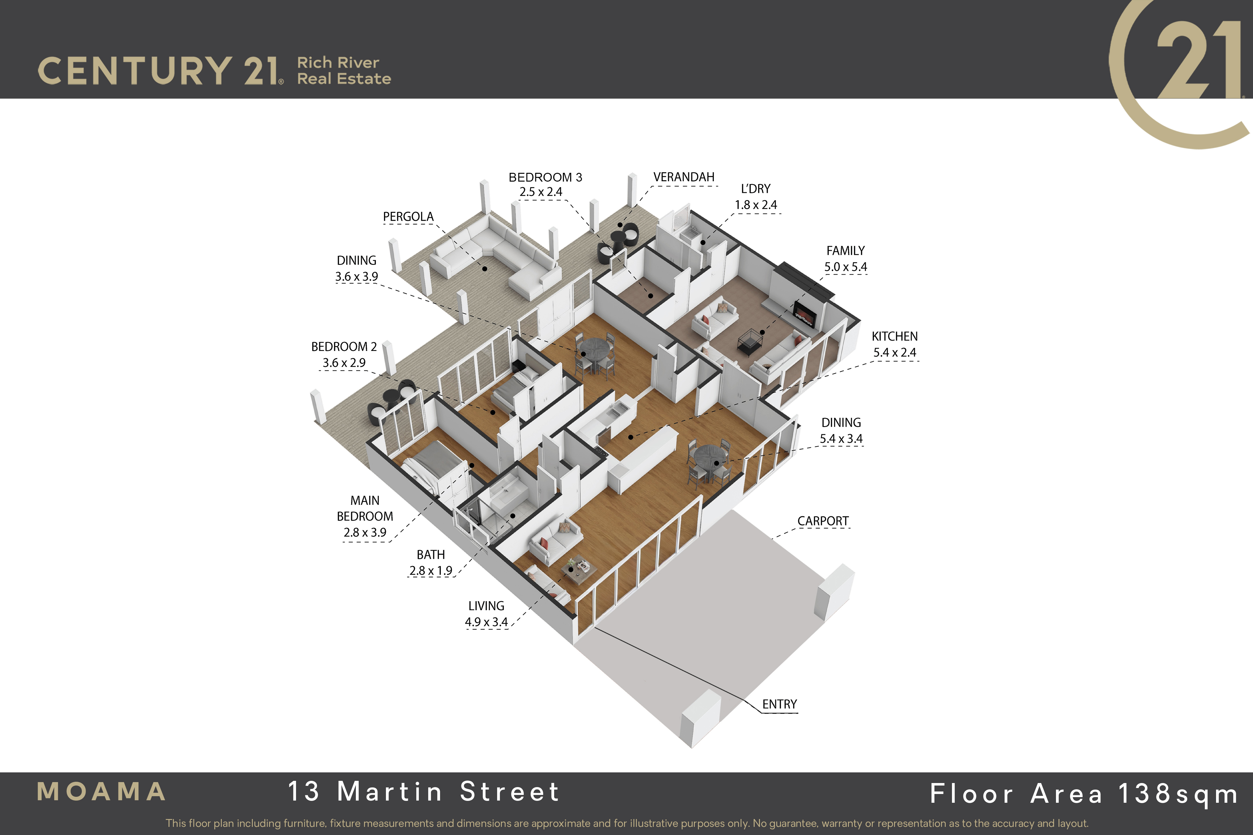Located in central Moama this unique home sits on a generous 772m2 (approx) allotment. Entering from the carport you are greeted by a bright a light-filled home, with polished floorboards throughout the home, the main area features raked ceilings and highlight windows, bringing heaps of light into the home all day and make space feel open and luxurious. The main living area is large and boasts an open fireplace, it adjoins the laundry and smaller third bedroom or study.