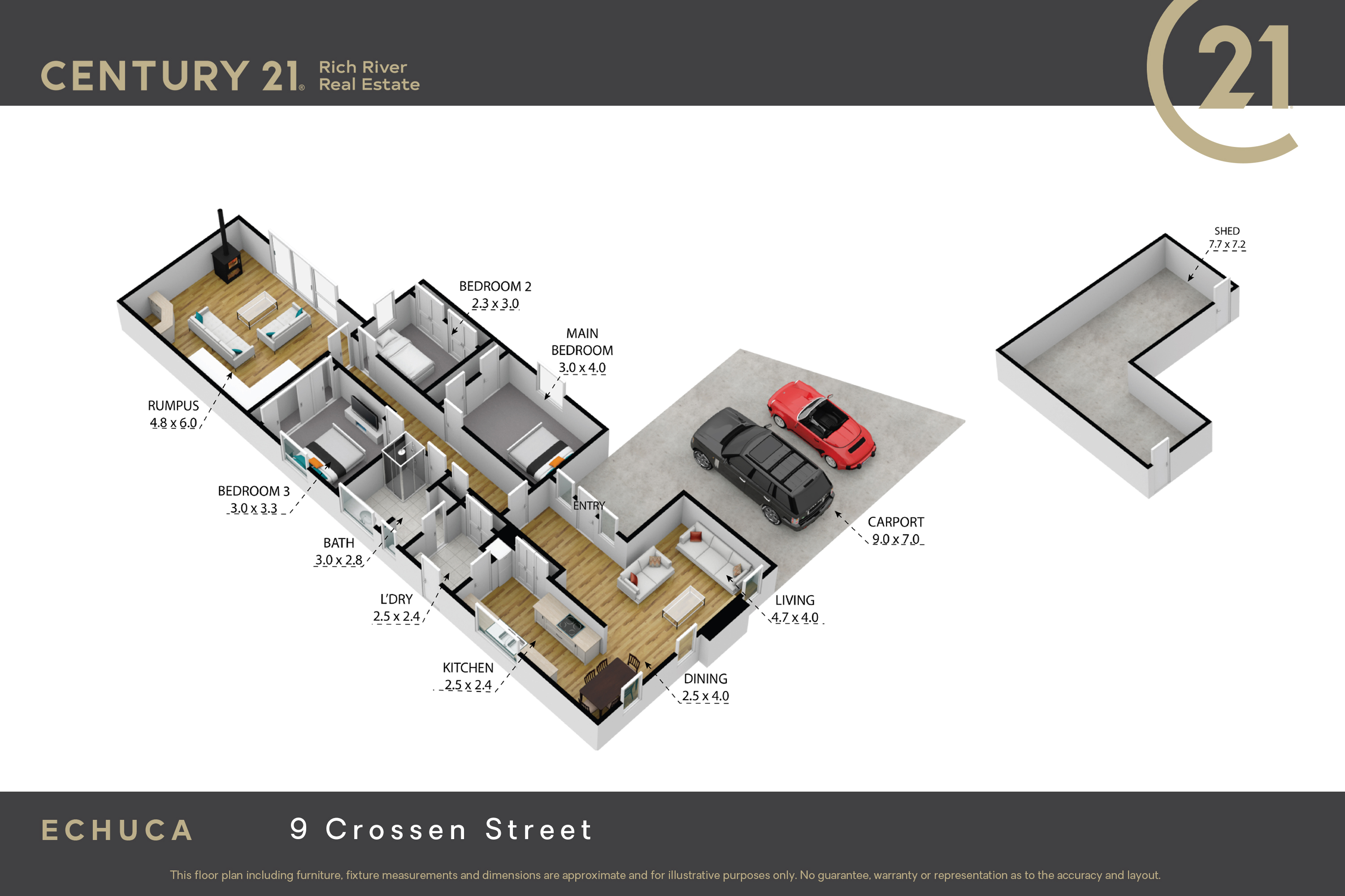 All of this set out on a very generous 742m2 (approx) allotment, with the convenience of the Crossenvale Shopping Complex, and the brand new Woolworths, in one direction, and the peace and quiet of the Campaspe River walking tracks and Rotary Park showgrounds in the other, location is also a real bonus here. Contact Beau Lyon and Sarah Monaghan from Century 21 Rich River Real Estate to organise your viewing today.